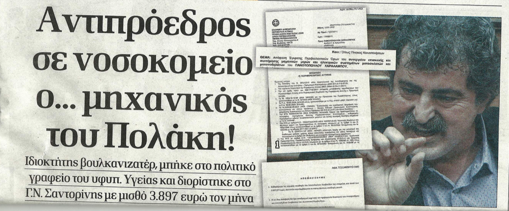 Στα σημερινά δημοσιεύματα, τα οποία έχουν ως μοναδικό σκοπό να αντιπολιτευτούν τον Παύλο Πολάκη -και κατ’ επέκταση την κυβέρνηση- απάντησε ο αντιπρόεδρος της ΑΕΜΥ και εντεταλμένος στο ΓΝ Θήρας, Χαράλαμπος Πανοτόπουλος. Η εφημερίδα Δημοκρατία θεωρεί μεμπτό το γεγονός, πως ο νέος επικεφαλής του νοσοκομείου στο παρελθόν ήταν ιδιοκτήτης βουλκανιζατέρ: