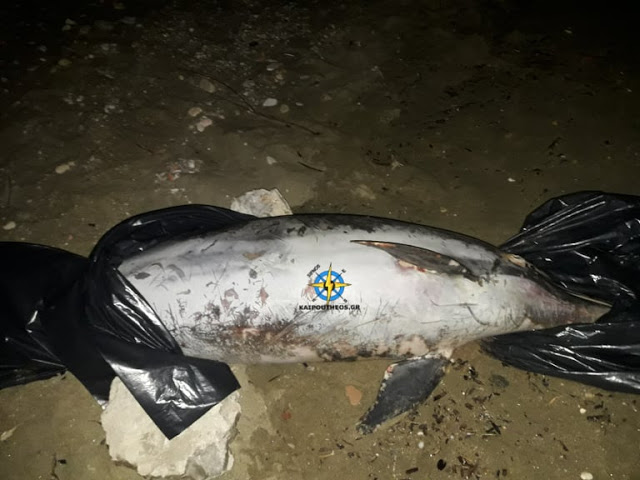 Οι πρώτες εκτιμήσεις δείχνουν ότι το δελφίνι ήταν νεκρό εδώ και κάποιες μέρες και ξεβράστηκε στις Καμάρες λόγω καιρού.