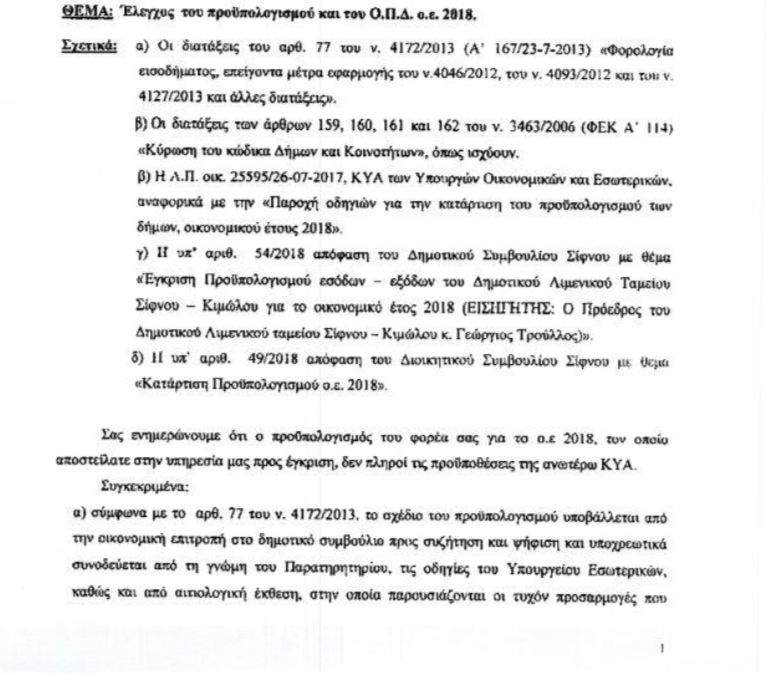 Προφανώς στη Σίφνο ψήφισαν τον προϋπολογισμό χωρίς να έχουν τη γνώμη του Παρατηρητηρίου και αναγκάστηκαν σε έκτακτη συνεδρίαση να τον ξαναψηφίσουν. Άγνοια ή προσπάθεια απόκρυψης μιας ουδέτερης γνώμης;