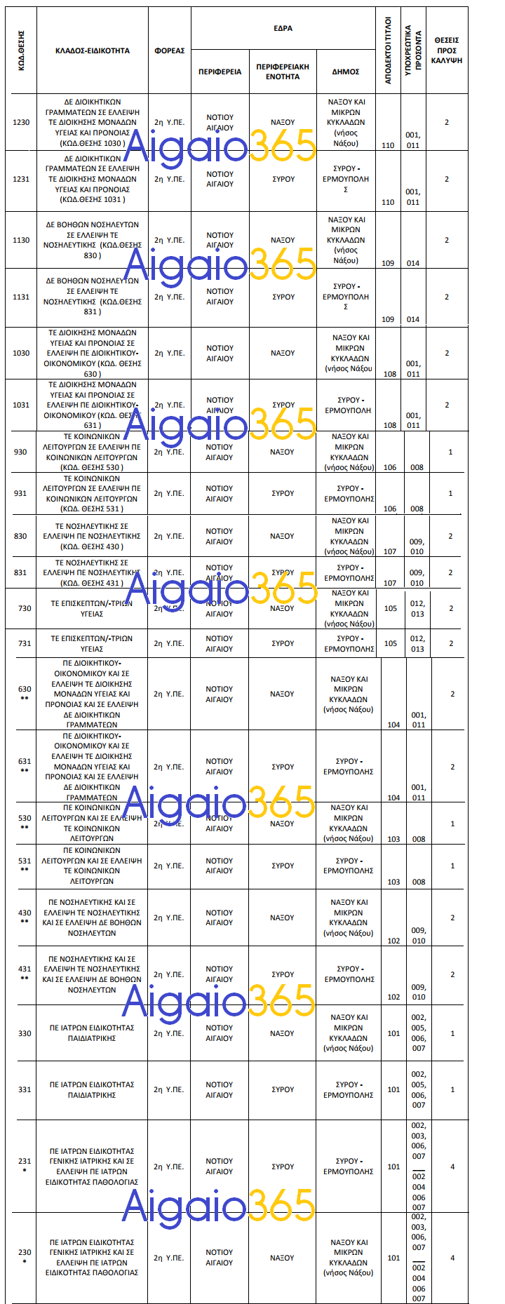 Αναλυτικά όλες οι θέσεις για τις Κυκλάδες: