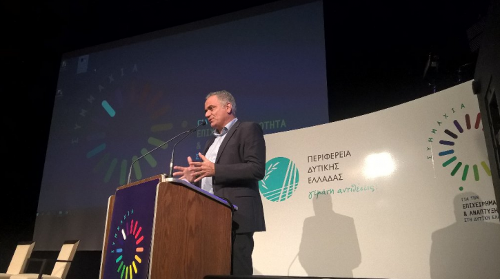 Εναρκτήρια ομιλία απηύθηνε ο Υπουργός Εσωτερικών, Πάνος Σκουρλέτης σήμερα Παρασκευή 15 Δεκεμβρίου 2017, κατά την τρίτη ημέρα των εργασιών του Διεθνούς Συνεδρίου «Συμμαχία Για Την Επιχειρηματικότητα Και Ανάπτυξη Στη Δυτική Ελλάδα», που διοργανώνει η Περιφέρεια Δυτικής Ελλάδας, στην Πάτρα.