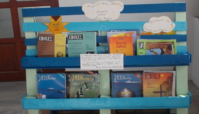 Οι μαθητές του Δημοτικού Σχολείου Αδάμαντα κατασκεύασαν μόνοι τους μια ανοιχτή βιβλιοθήκη, την έβαψαν και τη γέμισαν με βιβλία και περιοδικά, που θα συντροφεύουν τους επιβάτες τις ώρες αναμονής τους στο λιμάνι.