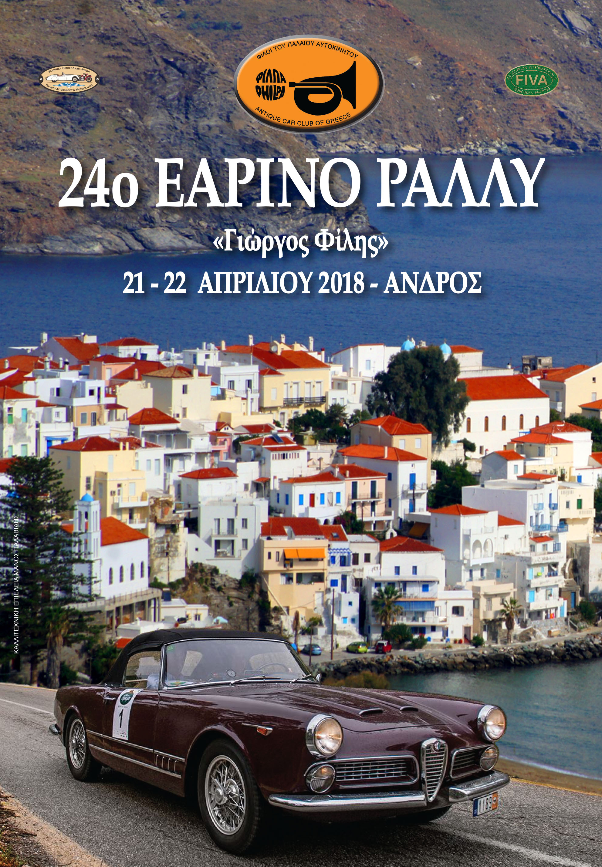 Αυτοκίνητα – αντίκες παίρνουν θέση στο σημείο εκκίνησης και ετοιμάζονται να ταξιδέψουν σε μία ξεχωριστή και όμορφη διαδρομή στην Άνδρο. Με συνδιοργανωτή τον Δήμο Άνδρου, το «ΕΑΡΙΝΟ ΡΑΛΛΥ ΦΙΛΠΑ» διοργανώνεται φέτος στο νησί, το Σαββατοκύριακο 21 και 22 Απριλίου 2018.