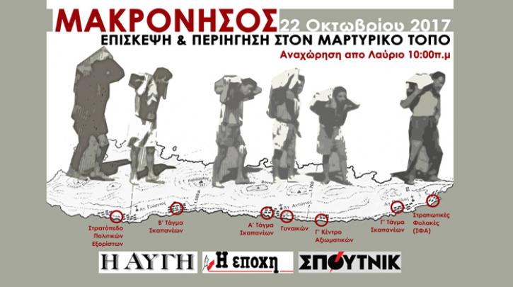 Την Κυριακή 22 Oκτωβρίου 2017, στις 10:00, από το λιμάνι του Λαυρίου θα αναχωρήσει πλοίο για τη Μαρτυρική Μακρόνησο