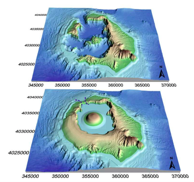 Η επίκουρη καθηγήτρια Παρασκευή Νομικού του Τμήματος Γεωλογίας και Γεωπεριβάλλοντος του Πανεπιστημίου Αθηνών, η οποία συμμετείχε στη μελέτη, δήλωσε ότι «η προμινωική καλδέρα ήταν μικρότερη από τη σημερινή, κλειστή στα νοτιοδυτικά και με ένα μόνο μικρό άνοιγμα στα βορειοδυτικά με ένα στενό κανάλι. Στο κέντρο της ρηχής πλημμυρισμένης καλδέρας υπήρχε η μικρότερη από τη σημερινή προ-Καμένη με ένα χαμηλό ηφαιστειακό κώνο».