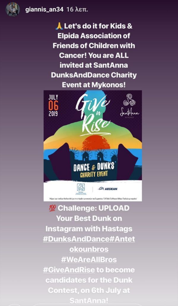 Το event θα έχει ασφαλώς μπασκετική χροιά, αφού πρόκειται ουσιαστικά για διαγωνισμό καρφωμάτων, με τους επίδοξους… dunkers να έχουν τη δυνατότητα να στείλουν το καλύτερο κάρφωμά τους στο instagram με τα hashtags που αναγράφει ο Γιάννης στο σχετικό ποστ που μπορείτε να δείτε παρακάτω.