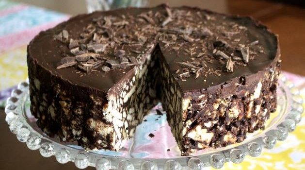 Ομως μοιάζει περισσότερο με τούρτα και μάλιστα όχι απλή αλλά με γλάσσο σοκολάτας. Κατά τα άλλα, τα κομμάτια μπισκότου αναμειγνύονται με τη σοκολάτα αφήνοντας σας μια μοναδική γεύση στο στόμα.