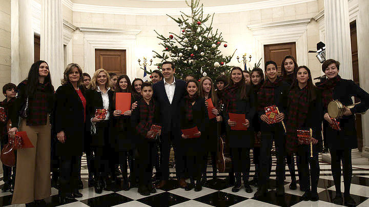 Τα κάλαντα στον πρωθυπουργό Αλέξη Τσίπρα είπαν πρώτοι, στις 10.30 το πρωί, οι μαθητές του 1ου γυμνασίου Παπάγου.