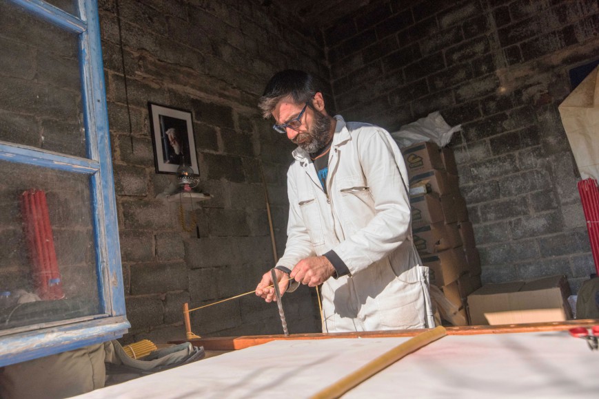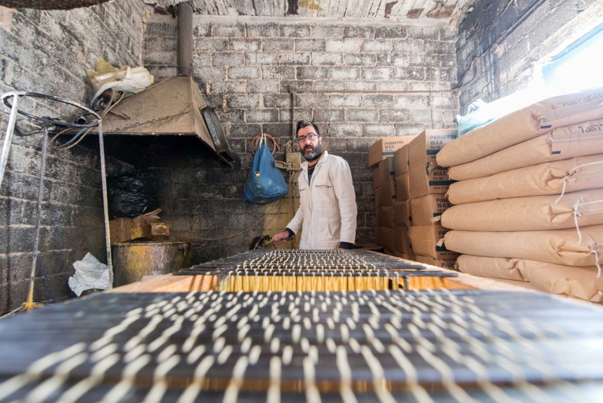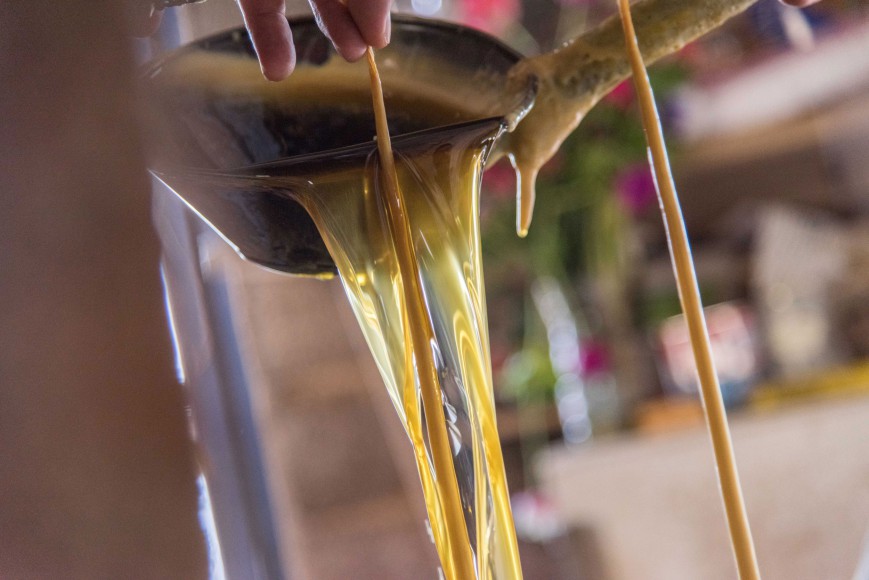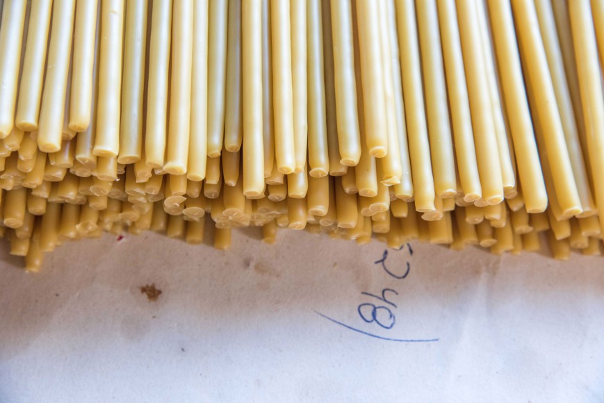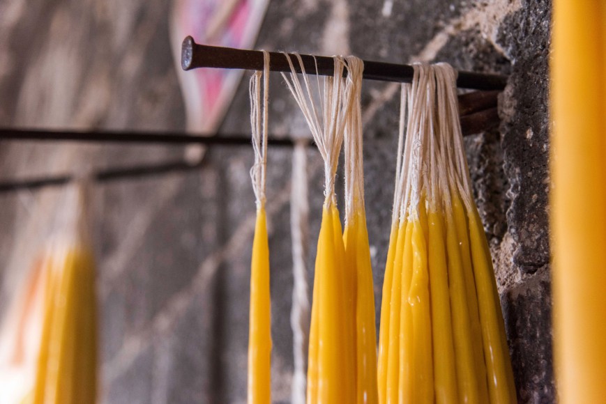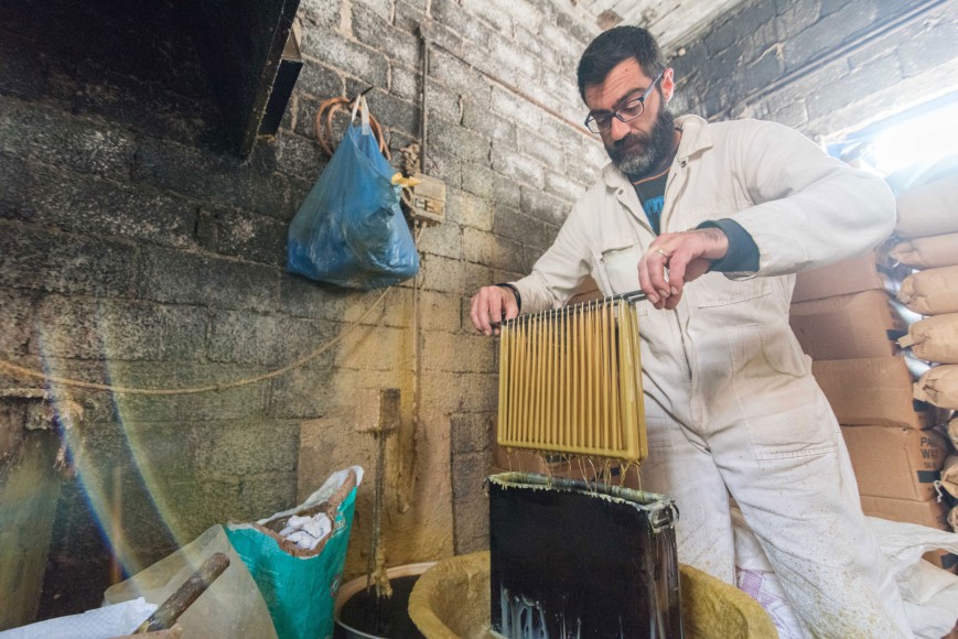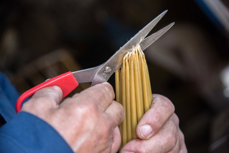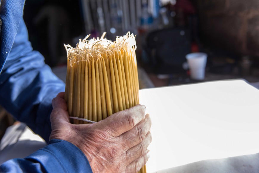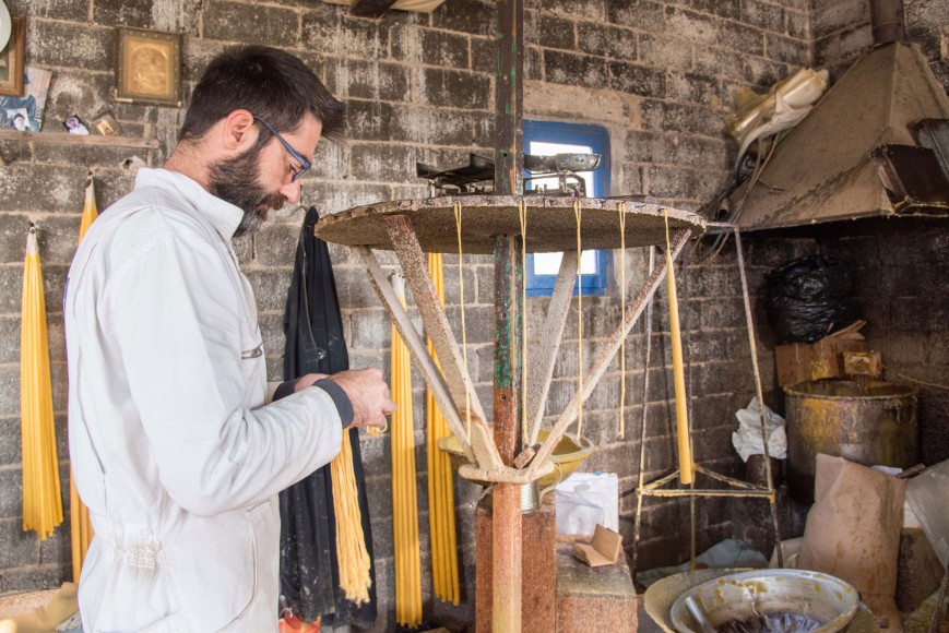 Τα περιγράφει όλα σα μια ευχάριστη και εύκολη διαδικασία. Στην πράξη καταλαβαίνω, όσο τον παρακολουθώ, πως είναι η αγάπη για το κερί που δεν αφήνει χώρο στην κούραση.