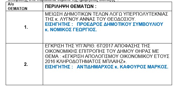 Aigaio365 > ΚΥΚΛΑΔΕΣ > ΣΑΝΤΟΡΙΝΗ > Νέα συνεδρίαση του Δημοτικού Συμβουλίου Θήρας