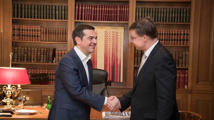 Συνάντηση με τον αντιπρόεδρο της Ευρωπαϊκής Επιτροπής Βλάντι Ντομπρόβσκις είχε στο Μέγαρο Μαξίμου ο Αλ. Τσίπρας. Ο κ. Ντομπρόβσκις χαρακτήρισε καλα νέα την ολοκλήρωση του ελληνικού προγράμματος και δήλωσε ότι «εργαζόμαστε για μια συνολικη συμφωνία που θα περιλαμβάνει τα μέτρα ελάφρυνσης του χρέους» ενώ εθεσε ως χρονικό ορίζοντα για τις αποφάσεις του Eurogroup της 21ης Ιουνίου.