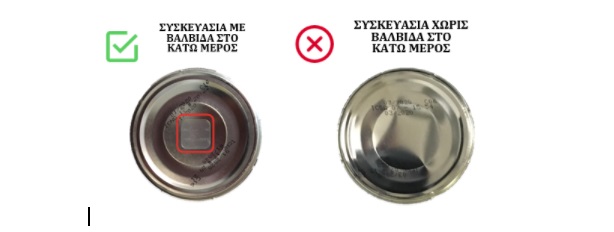 Οι ελαττωματικές συσκευασίες είναι εύκολα αναγνωρίσιμες διότι δεν διαθέτουν τη βαλβίδα εκτόνωσης πίεσης στο κάτω μέρος και μπορεί να ανιχνευθεί μια ανώμαλη διόγκωση στη συσκευασία.