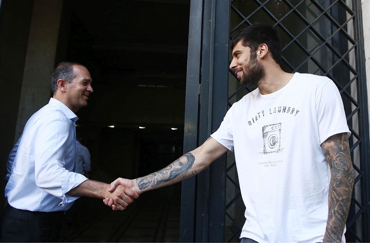 «Νιώθω πάρα πολύ όμορφα. Μιλούσαμε για αρκετή ώρα. Σας είχαμε μέσα στον ήλιο και σας ευχαριστώ που περιμένατε. Κάναμε μία πάρα πολύ ωραία κουβέντα και σίγουρα όλοι καταλάβαμε τα λάθη μας και το τι έφταιξε και τελικά δεν καταφέραμε να πάρουμε κάποιον τίτλο. Με χαροποίησε πολύ ο τρόπος που μιλήσαμε. Συμφωνήσαμε σχεδόν κατευθείαν για την επόμενη τριετία και θα είμαστε και πάλι μαζί. Και για μένα είναι πολύ μεγάλη χαρά γιατί έτσι όπως δείχνει το πράγμα θα τελειώσω εδώ την καριέρα μου».