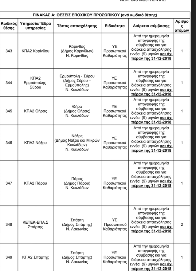 Οι θέσεις που θα καλυφθούν στο νομό Κυκλάδων είναι για τους δήμους Νάξου και Μικρών Κυκλάδων, Σύρου – Ερμούπολης, Σαντορίνης και Πάρου.