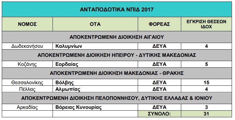 τριάντα μία (31) συμβάσεις με σχέση εργασίας ιδιωτικού δικαίου ορισμένου χρόνου σε υπηρεσίες ανταποδοτικού χαρακτήρα σε ΝΠΙΔ, για χρονικό διάστημα έως οκτώ (8) μήνες, σύμφωνα με τον πίνακα που ακολουθεί: