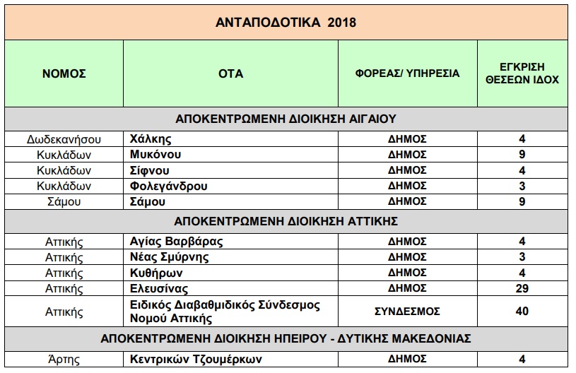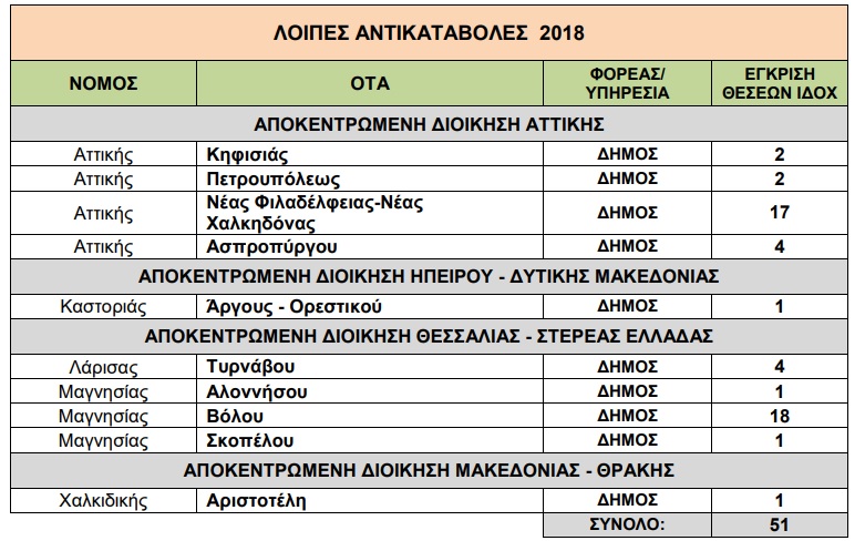 πενήντα μία (51) συμβάσεις με σχέση εργασίας ιδιωτικού δικαίου ορισμένου χρόνου για χρονικό διάστημα έως οκτώ (8) μήνες σε ΟΤΑ για τη στελέχωση υπηρεσιών, σύμφωνα με τον πίνακα που ακολουθεί: