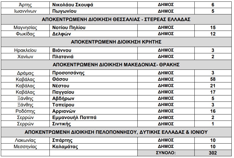 τριακόσιες δύο (302) συμβάσεις προσωπικού με σχέση εργασίας ιδιωτικού δικαίου ορισμένου χρόνου για υπηρεσίες ανταποδοτικού χαρακτήρα στους ΟΤΑ α’ βαθμού, σύμφωνα με τον πίνακα που ακολουθεί: