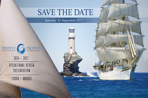 Το Σάββατο 16 Σεπτεμβρίου 2017, στις 20.00, θα παρουσιαστεί στο Ανοικτό Θέατρο Άνδρου ο απολογισμός δράσεων των πρώτων τεσσάρων χρόνων της «Πρωτεύς Κοινωνική Καινοτομία & Ανάπτυξη» και του προγράμματος υποτροφιών ιστιοναυτικής εκπαίδευσης «ΕΙΔΟΘΕΑ».