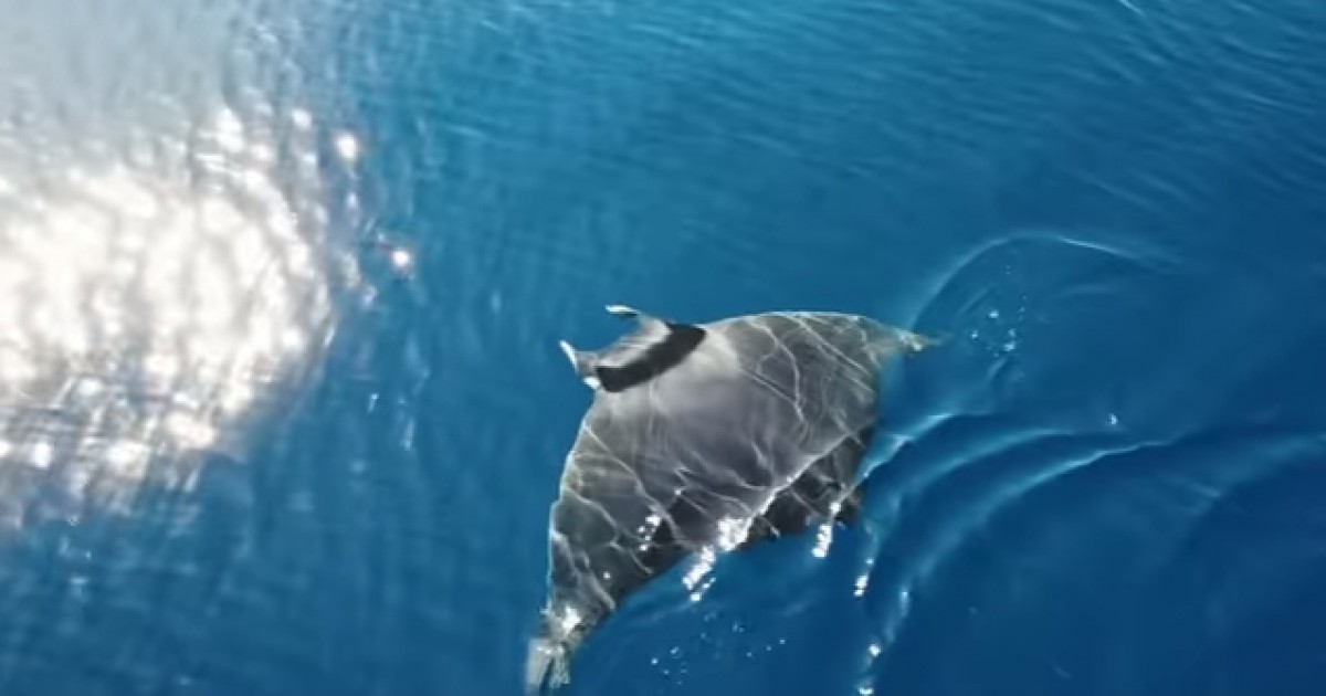 Ένα τεράστιο σαλάχι περίπου 2,5μ. που κολυμπούσε ανενόχλητο ανοιχτά της Μυκόνου «έπιασε» ο αεροκινηματογραφιστής της «Skyeye» Τάκης Γιαννέτος.