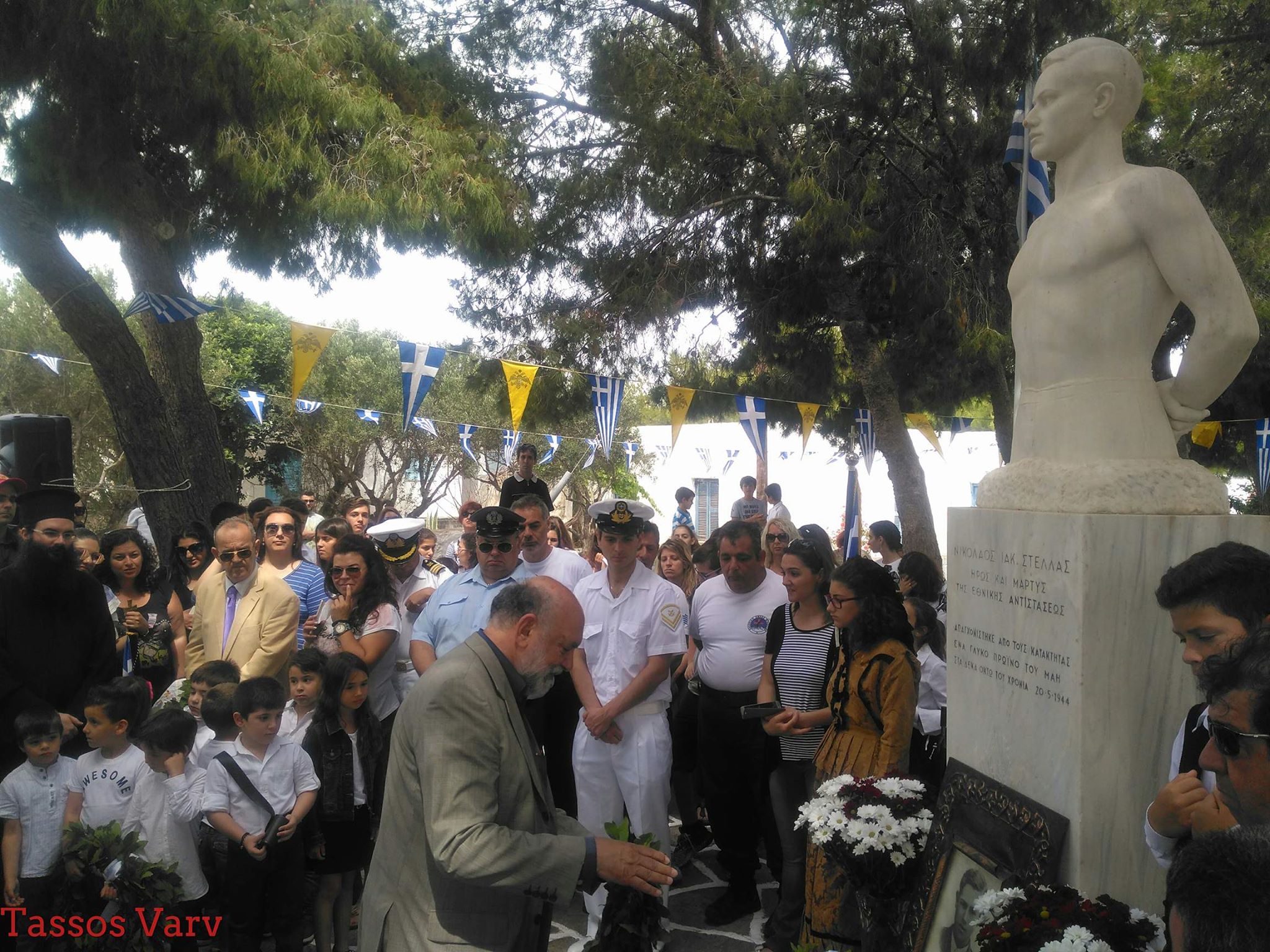 Οι εκδηλώσεις μνήμης και τιμής για τον παριανό μάρτυρα και αγωνιστή ξεκίνησαν με επιμνημόσυνη δέηση που τελέστηκε στον Ιερό Ναό Μεταμόρφωσης του Σωτήρος και ακολούθησαν καταθέσεις στεφάνων από εκπροσώπους τοπικών φορέων και αρχών στο μνημείο του ήρωα.