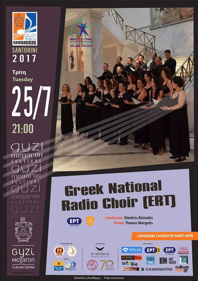 Η Χορωδία της ΕΡΤ στo πλαίσιo των θερινών της εκδηλώσεων παρουσιάζει ένα ξεχωριστό πρόγραμμα στη Σαντορίνη στις 25 Ιουλίου στις 9 μ.μ, στο Μέγαρο Γκύζη.