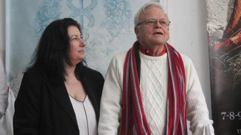 Εκπρόσωποι του Δήμου Σύρου – Ερμούπολης, πρόεδροι πολιτιστικών συλλόγων και φορέων του νησιού (ΛΕΣ, Μουσικός Όμιλος, Σύλλογοι Ποντίων και Βορειοελλαδιτών, Μικρασιατών), μέλη και φίλοι αντάμωσαν στα γραφεία του Ομίλου, καθισμένοι ανάμεσα σε σκηνικά παλαιότερων παραστάσεων που αξιοποιήθηκαν για τις ανάγκες της εκδήλωσης αλλά και σε αφίσες και banners «Απολλώνιων» παραγωγών που αγαπήθηκαν και άφησαν τη δική τους ιστορία στην πρωτεύουσα των Κυκλάδων.