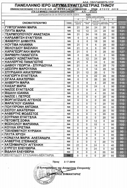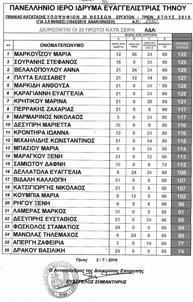 Aigaio365 > ΚΥΚΛΑΔΕΣ > ΤΗΝΟΣ > Τα αποτελέσματα των προσλήψεων στο Π.Ι.Ι.Ε.Τήνου