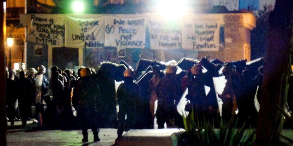 Μια εικόνα που συνοδεύεται με τον ισχυρισμό ότι απεικονίζει μουσουλμάνους μετανάστες να έχουν σταυρώσει μια…