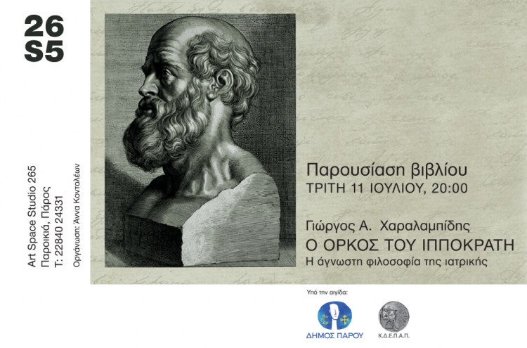 H παρουσίαση του βιβλίου «Ο Όρκος του Ιπποκράτη» του Γιώργου Χαραλαμπίδη, θα γίνει την Τρίτη…