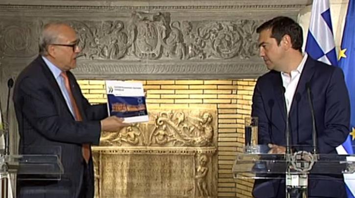 Η έκθεση (σ.σ. η ετήσια οικονομική έρευνα του Οργανισμού για την Ελλάδα) φέρνει καλά νέα συμφώνησαν Αλέξης Τσίπρας και Άνχελ Γκουρία κατά τον διάλογο που είχαν νωρίτερα μπροστά στις τηλεοπτικές κάμερες στην έναρξη της συνάντησής τους στο Μέγαρο Μαξίμου, με τον πρωθυπουργό να δηλώνει ικανοποιημένος «για όλα αυτά που καταφέραμε να πετύχουμε».