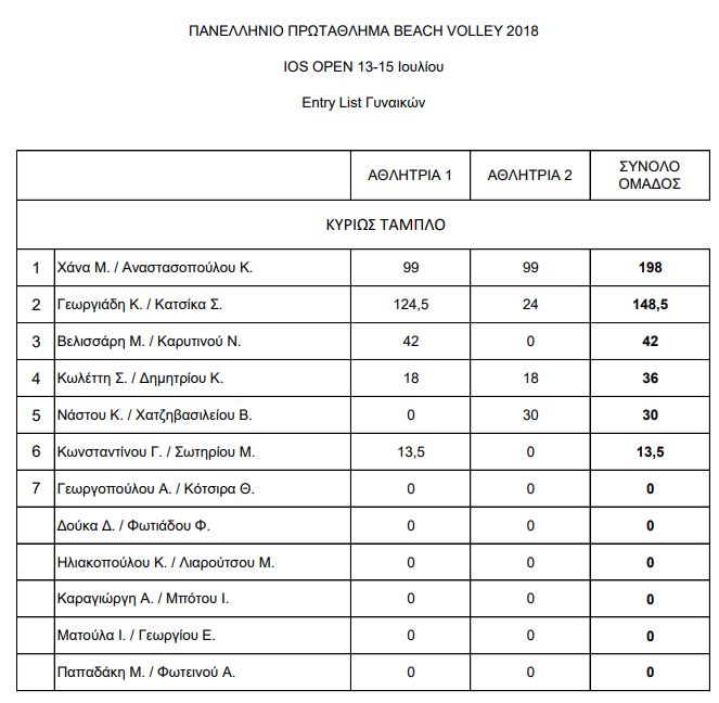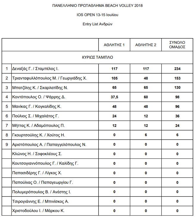 Δείτε τις entry list