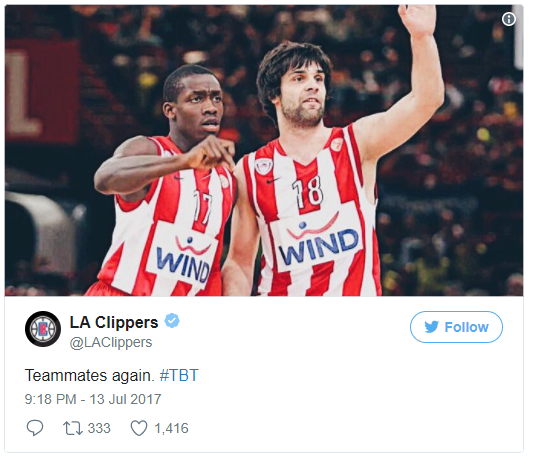 Η ομάδα του Λ.Α. πόσταρε στo twitter φωτογραφία των δύο γκαρντ όταν ήταν συμπαίκτες στον Πειραιά!