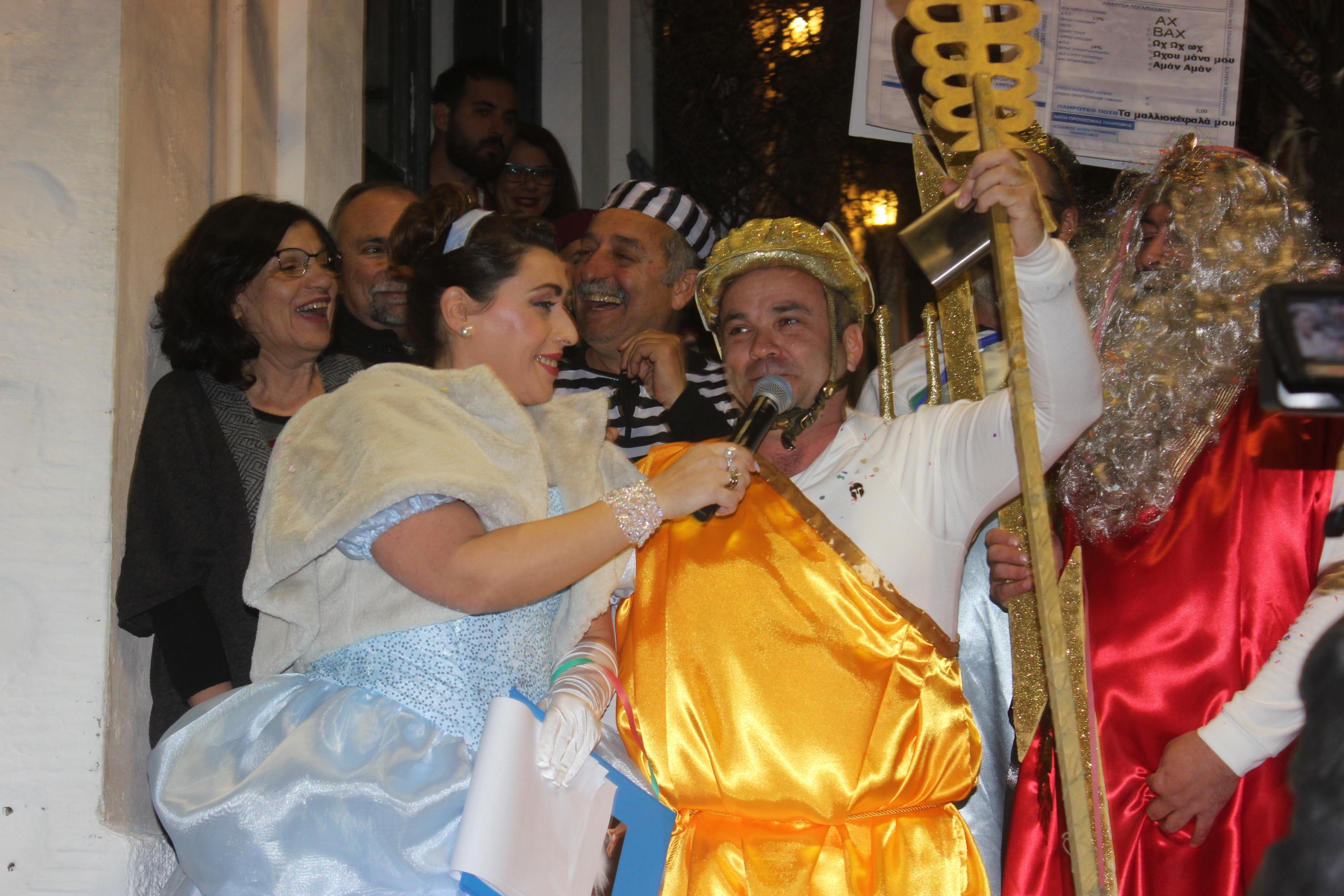 Η Μαριάννα Βακονδίου και ο Γιώργος Ρούσσος, οι σταθεροί και έμπειροι πια «καπετάνιοι» μας στις καρναβαλικές εκδηλώσεις στην πρωτεύουσα των Κυκλάδων, παρουσίασαν με το δικό τους μοναδικό τρόπο τη βραδιά, καλωσορίζοντας στα σκαλάκια της Πιάτσας τις ομάδες που αποτελούν την «ψυχή» του Συριανού Καρναβαλιού «Γεώργιος Σουρής 2019».