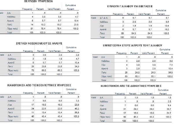 Στους παρακάτω πίνακες παρουσιάζονται μερικά από τα αποτελέσματα της έρευνας
