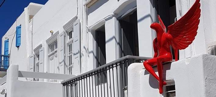 Εκτός από αυτόν του Παλαιού Φαλήρου, που άγνωστοι τον γκρέμισαν τα ξημερώματα της Πέμπτης, υπάρχει και άλλος κόκκινος άγγελος, ο οποίος μάλιστα ήταν όλο το καλοκαίρι στη Μύκονο.